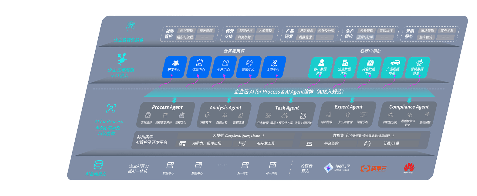 端到端的一站式AI工作空间深度融合了从企业战略规划到日常经营的全流程业务板块,,定向解决车企内部领域多、、、部门多、、链条长、、、场景碎片化等难题,,,支持车企快速构建以AI为核心的生产力写作体系,,实现任务执行与AI能力的无缝集成与交互